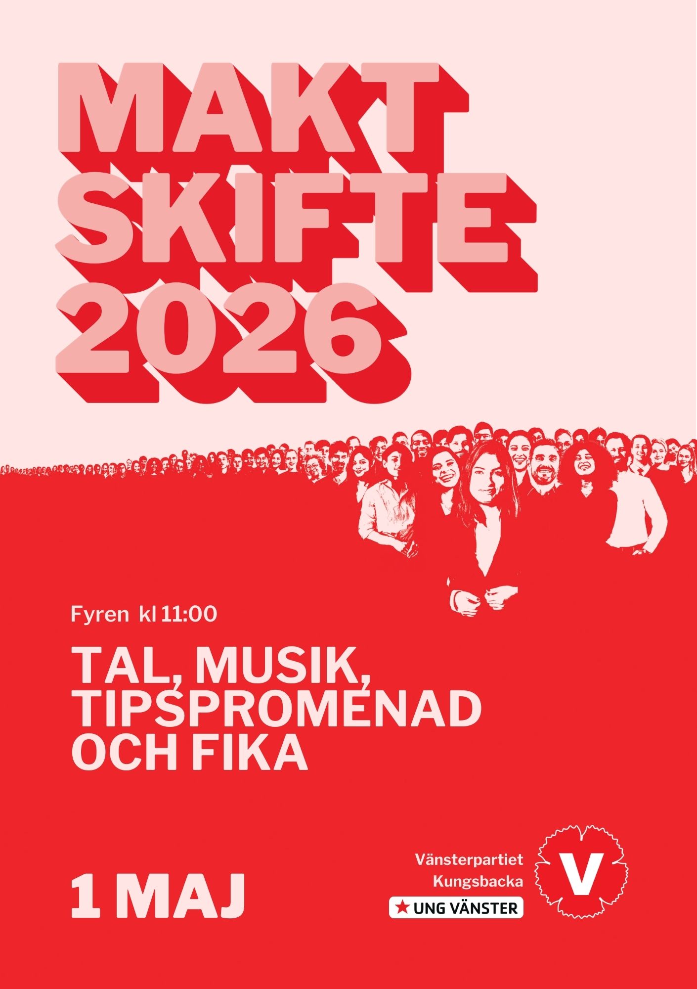 Vänsterpartiet Kungsbacka bjuder in till 1 maj firande utanför Kulturhuset Fyren kl 11.